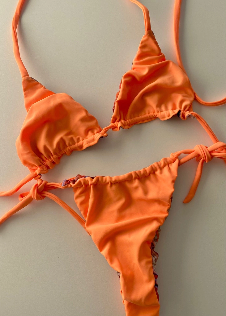 Copa triangular reversible y super versatil. Nuestra lycra contiene 80% Polyester y 20% Spandex, además de protección solar factor UV50. Este es un corpiño atemporal, ideal para todos los veranos, y, como se puede ver en las fotos, puede utilizarse de múltiples formas.