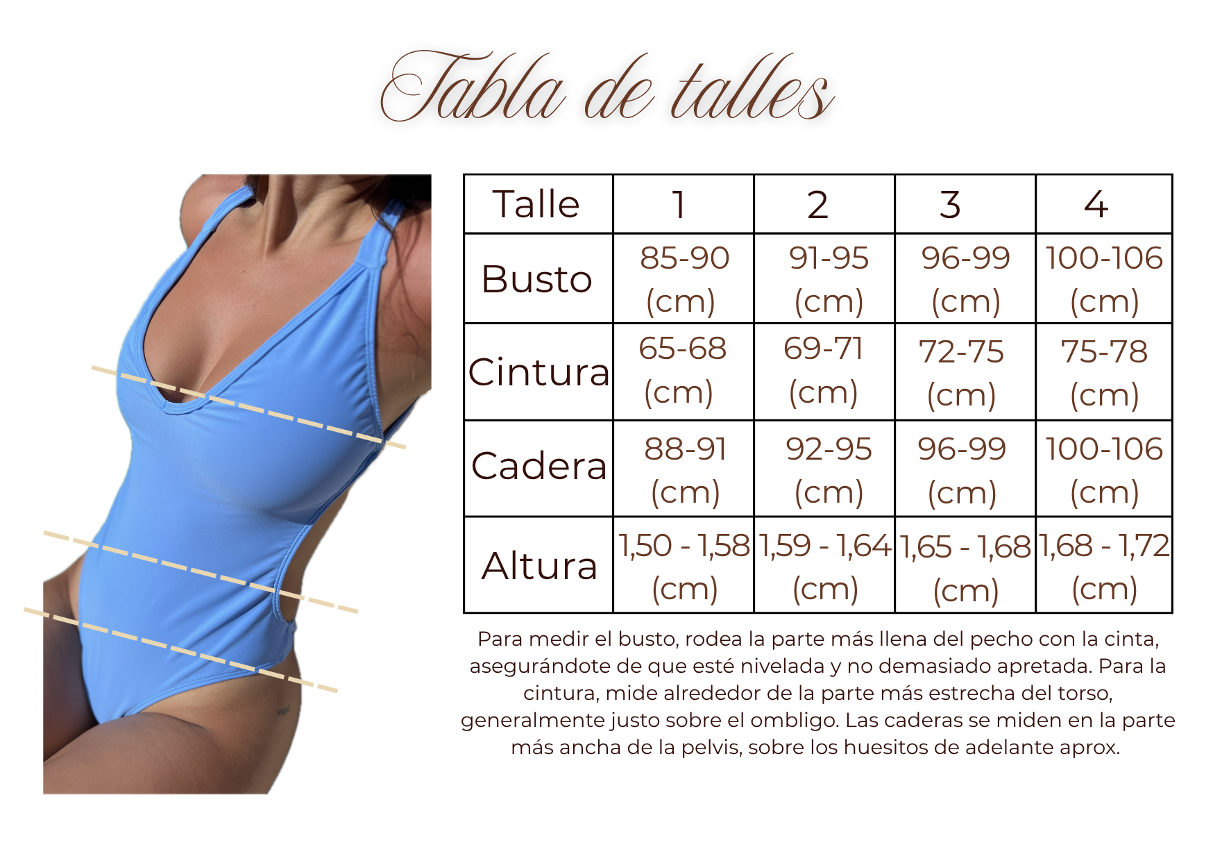 -TALLES: En la enteriza Bardot es importante priorizar las medidas de cadera y altura a la hora de elegir el talle. Los talles son aproximados, si luego de tomarte las medidas seguis teniendo dudas nos podes escribir y te ayudamos!
