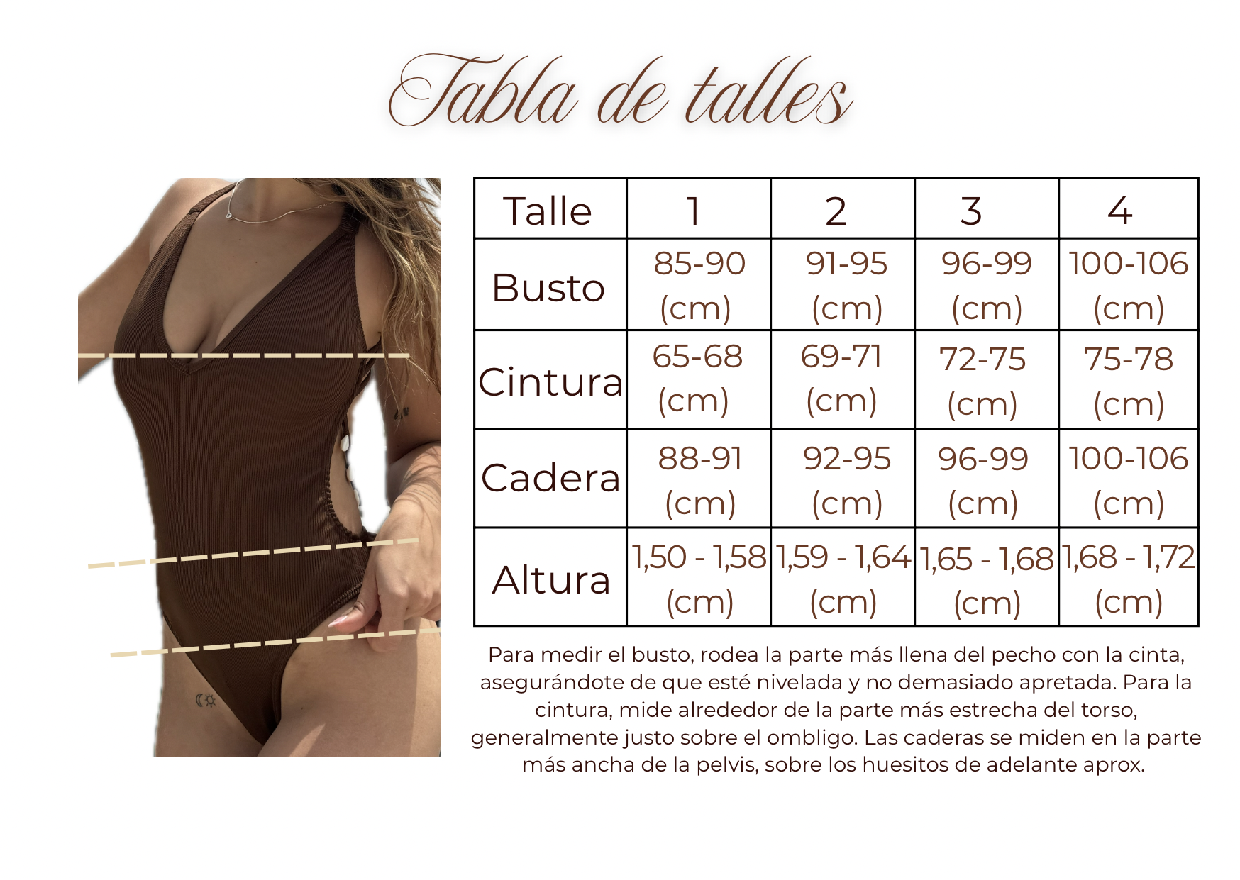 -TALLES: En la enteriza Bardot es importante priorizar las medidas de cadera y altura a la hora de elegir el talle. Los talles son aproximados, si luego de tomarte las medidas seguis teniendo dudas nos podes escribir y te ayudamos!